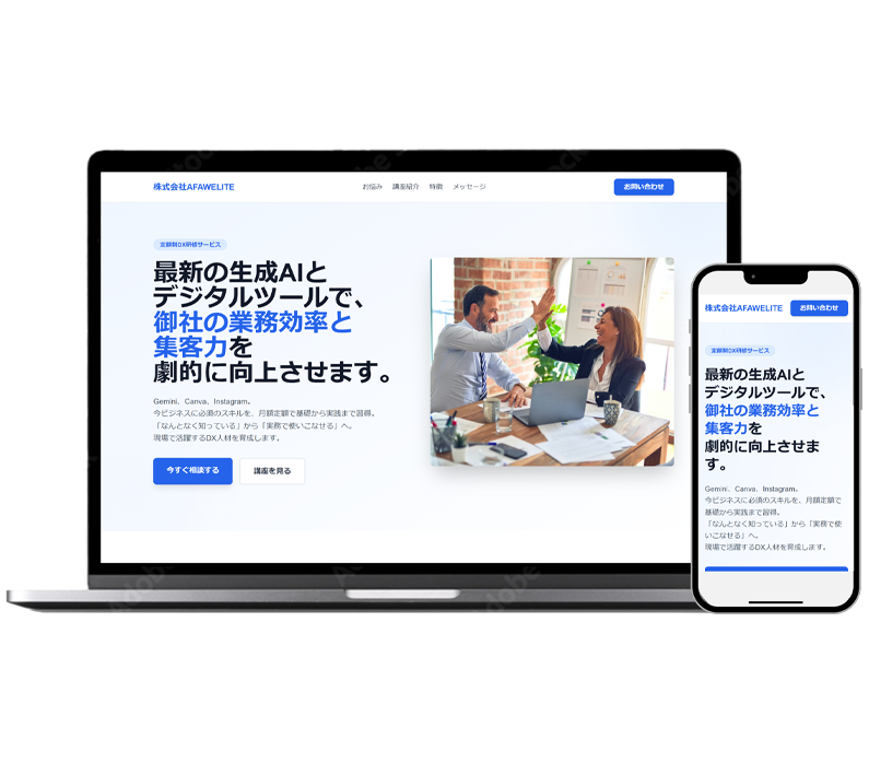 Gemini、Canva、Instagramなどのビジネス必須ツールを体系的に習得し、業務効率化と集客力向上を同時に推進する人材育成プログラムです。知識習得にとどまらず、実務で活用できるレベルまで支援することで、企業のDX推進を内側から強化します。